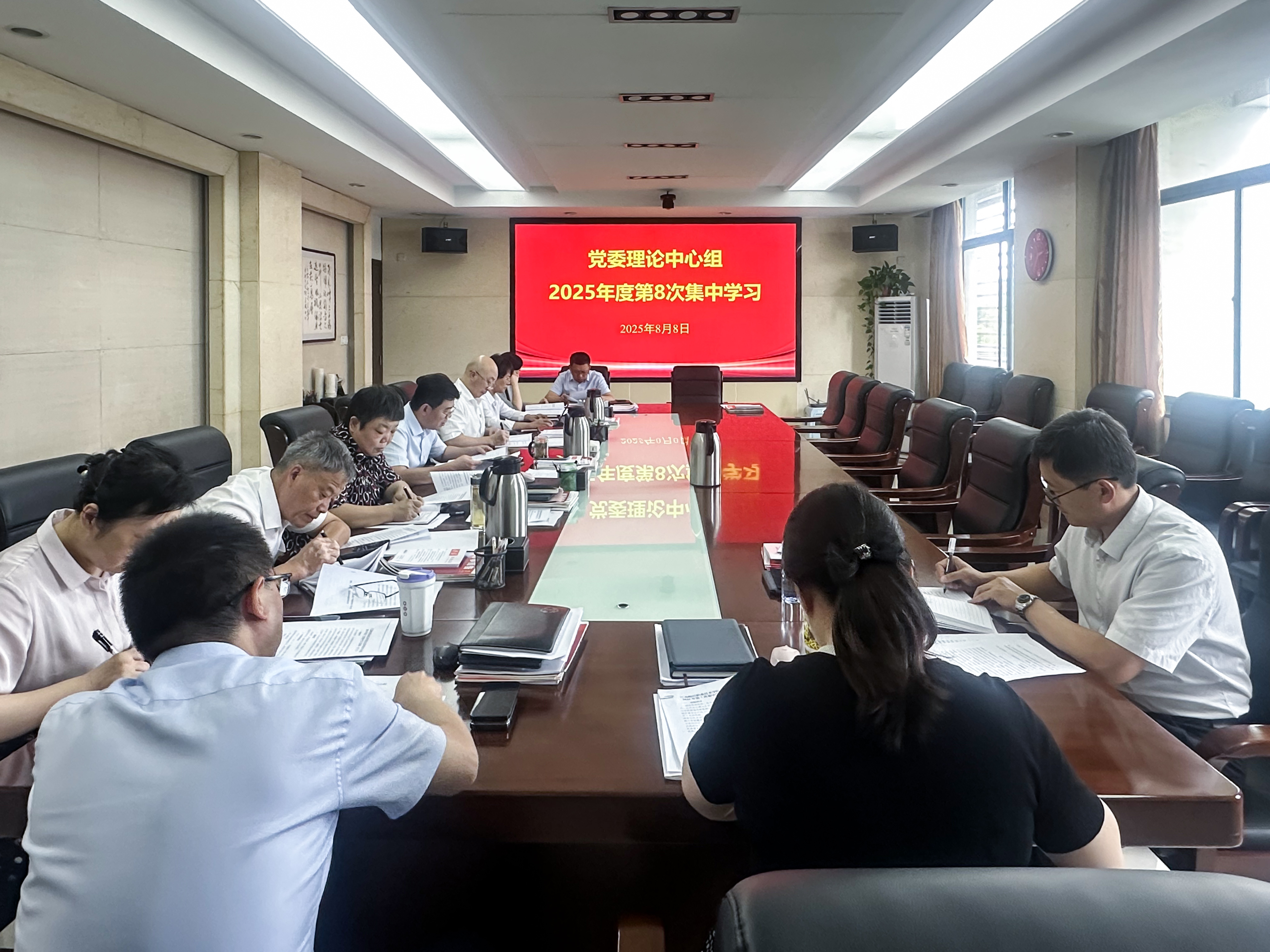 8月8日下午,学校党委理论学习中心组在明德楼310会议室举行2025年度第8次集中学习会,党委书记闫超栋主持会议并作总结讲话。